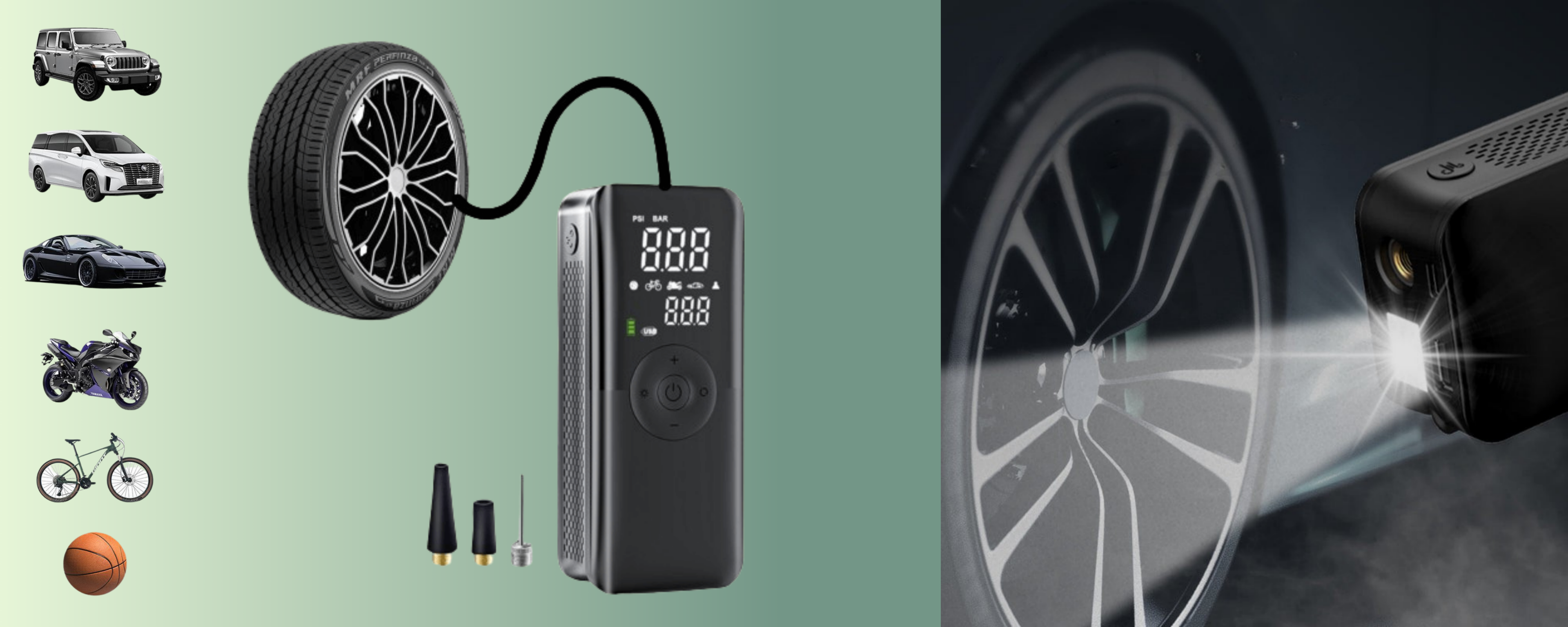 Rechargeable Tyre Inflator Cordless Battery Powered Pump